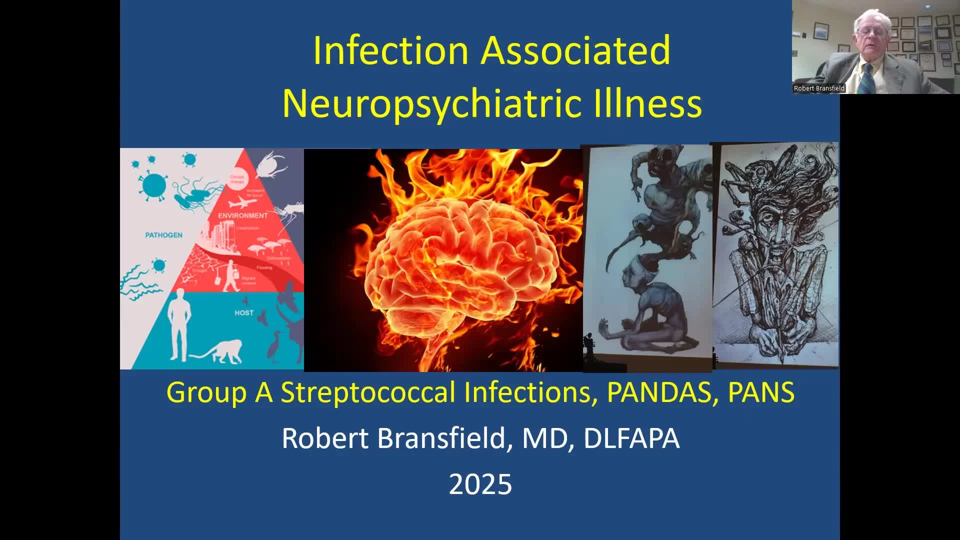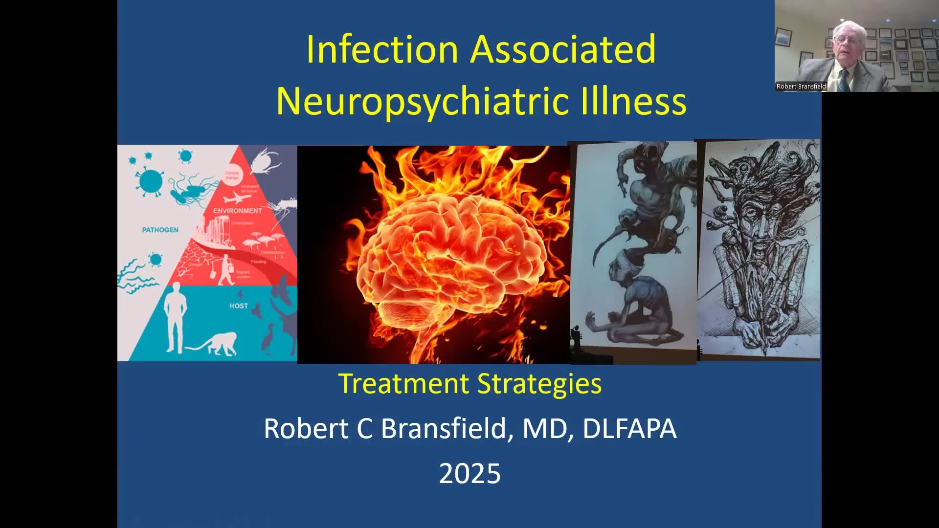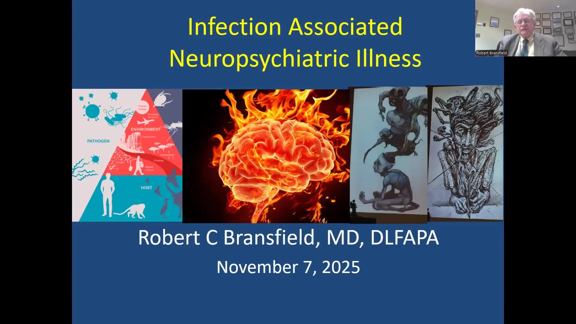 It Begins Here Skip to Videos All | Infection Associated Psychiatric Illness | Infection Associated Psychiatric Illness, • 11/7/25 Infection Associated Neuropsychiatric Illness Introduction Infection Associated Psychiatric Illness, • 11/7/25 History of Infection Associated Neuropsychiatric Illness Infection Associated Psychiatric Illness, • 11/8/25 Infection Associated Neuropsychiatric Illness: Infectious Agents with Psychiatric Manifestations & Examples of Mental Conditions Associated with Infections Infection Associated Psychiatric Illness, • 11/8/25 Infection Associated Neuropsychiatric Illness: Pathophysiology Infection Associated Psychiatric Illness, • 11/8/25 Infection Associated Neuropsychiatric Illness: Epidemiology and Global Stability 11/12/25 Infection Associated Neuropsychiatric Illness: Microbes and Dementia Infection Associated Psychiatric Illness, • 11/8/25 Infection Associated Mental Illness- Assessment Infection Associated Psychiatric Illness, • 11/8/25 Infection Associated Neuropsychiatric Illness: Assessment of Children Infection Associated Psychiatric Illness, • 11/8/25 Infection Associated Neuropsychiatric Illness: Laboratory Testing Infection Associated Psychiatric Illness, • 11/8/25 Infection Associated Neuropsychiatric Illness: Treatment strategies Infection Associated Psychiatric Illness, • 11/7/25 Infection Associated Neuropsychiatric Illness- Syphilis Infection Associated Psychiatric Illness, • 11/7/25 Infection Associated Neuropsychiatric Illness- Toxoplasmosis Infection Associated Psychiatric Illness, • 11/8/25 Infection Associated Neuropsychiatric Illness: COVID-19 11/8/25 Infection Associated Neuropsychiatric Illness: Lyme/tick-borne disease Infection Associated Psychiatric Illness, • 11/7/25 Infection Associated Neuropsychiatric Illness- Group A Streptococcal Infections, PANDAS, PANS Infection Associated Psychiatric Illness, • 11/8/25 Infection Associated Neuropsychiatric Illness: Conclusions and Future Directions