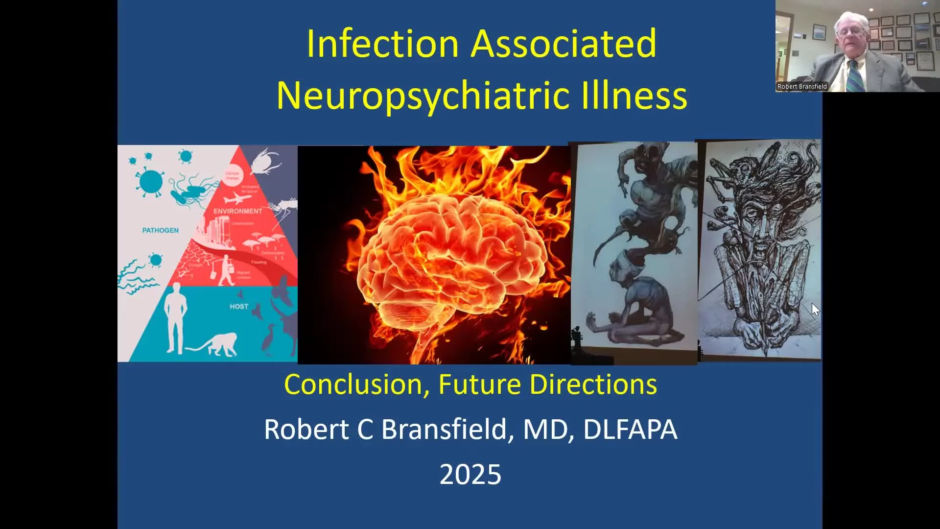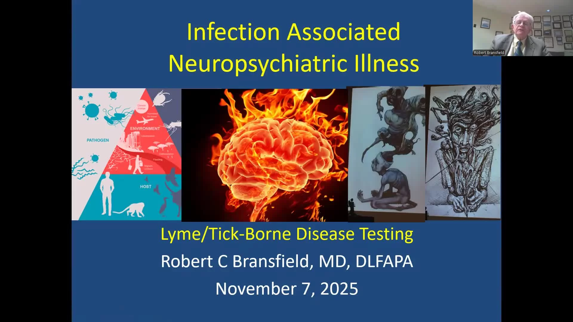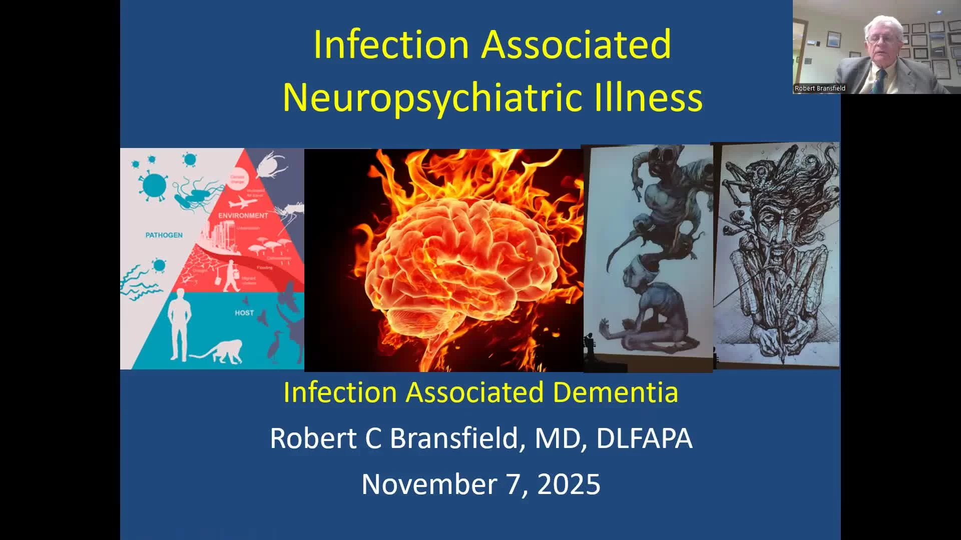 It Begins Here Skip to Videos All | Infection Associated Psychiatric Illness | Infection Associated Psychiatric Illness, • 11/7/25 Infection Associated Neuropsychiatric Illness Introduction Infection Associated Psychiatric Illness, • 11/7/25 History of Infection Associated Neuropsychiatric Illness Infection Associated Psychiatric Illness, • 11/8/25 Infection Associated Neuropsychiatric Illness: Infectious Agents with Psychiatric Manifestations & Examples of Mental Conditions Associated with Infections Infection Associated Psychiatric Illness, • 11/8/25 Infection Associated Neuropsychiatric Illness: Pathophysiology Infection Associated Psychiatric Illness, • 11/8/25 Infection Associated Neuropsychiatric Illness: Epidemiology and Global Stability 11/12/25 Infection Associated Neuropsychiatric Illness: Microbes and Dementia Infection Associated Psychiatric Illness, • 11/8/25 Infection Associated Mental Illness- Assessment Infection Associated Psychiatric Illness, • 11/8/25 Infection Associated Neuropsychiatric Illness: Assessment of Children Infection Associated Psychiatric Illness, • 11/8/25 Infection Associated Neuropsychiatric Illness: Laboratory Testing Infection Associated Psychiatric Illness, • 11/8/25 Infection Associated Neuropsychiatric Illness: Treatment strategies Infection Associated Psychiatric Illness, • 11/7/25 Infection Associated Neuropsychiatric Illness- Syphilis Infection Associated Psychiatric Illness, • 11/7/25 Infection Associated Neuropsychiatric Illness- Toxoplasmosis Infection Associated Psychiatric Illness, • 11/8/25 Infection Associated Neuropsychiatric Illness: COVID-19 11/8/25 Infection Associated Neuropsychiatric Illness: Lyme/tick-borne disease Infection Associated Psychiatric Illness, • 11/7/25 Infection Associated Neuropsychiatric Illness- Group A Streptococcal Infections, PANDAS, PANS Infection Associated Psychiatric Illness, • 11/8/25 Infection Associated Neuropsychiatric Illness: Conclusions and Future Directions
